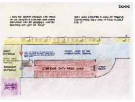 Between 2006 and 2013, the "Duty Free Shop" project aimed to deconstruct, make "readable" and make travelers understand the perverse strategies of spatial organization of airport terminals (entirely dedicated to commerce) to which they are subjected. With the idea, of course, of weakening the well-thought-out process of spatial alienation that the designers - politicians, planners, and architects - are trying to impose in a "monopolized" public space. The processes underway in airport terminals are interesting to deconstruct in that they foreshadow initiatives that are beginning to develop in other public spaces, such as bus and train stations, certain streets and squares, and, more expectedly, shopping malls.